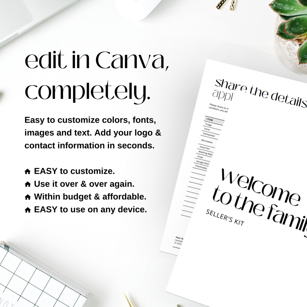 DIGITAL DOWNLOAD TEMPLATE ON CANVA | NEW LISTING ONBOARDING KIT FOR REAL ESTATE