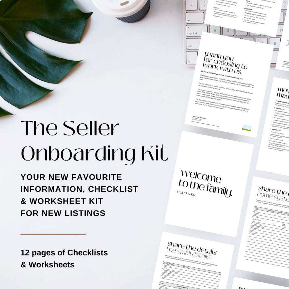 This New Listing & New Seller Onboarding Kit is the perfect worksheet & checklist bundle to collect all the information you need from your sellers in one place, and is the perfect follow up to signing the Listing Agreement & contracts. Never worry about forgetting or missing a house detail again by collecting all of the information you need in one package.